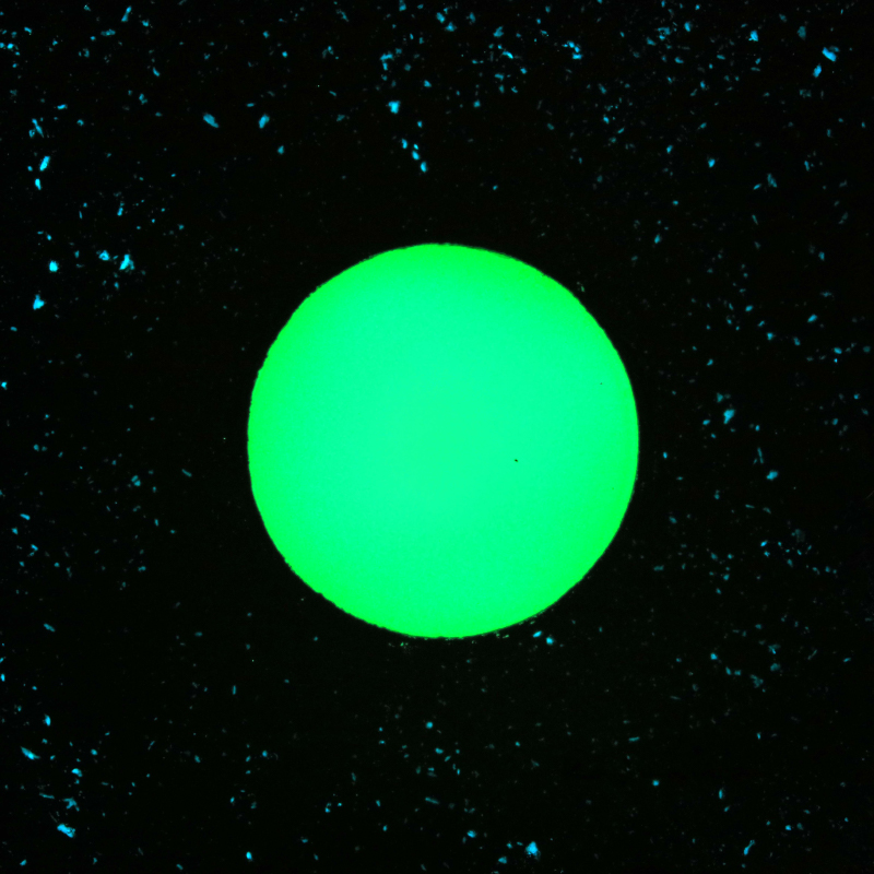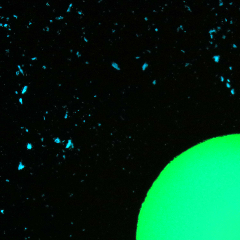 蓄光素材は、光を吸収して蓄え暗闇でエネルギーを放出し光るという仕組みにより、 明るいところでは見えなかったものが暗くすることで、可視化できるようになります。