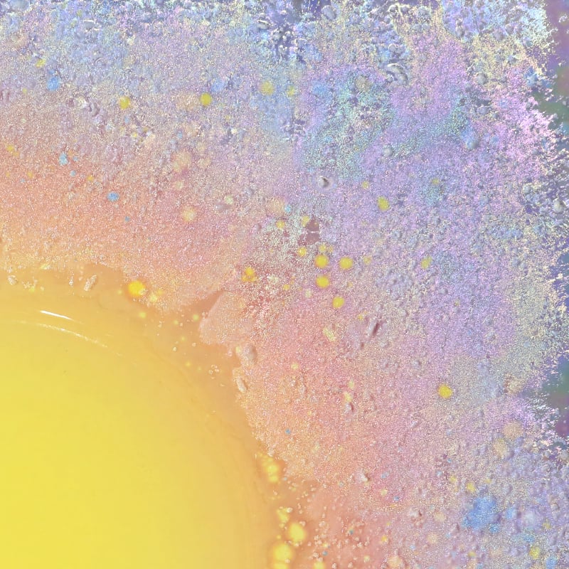 この素材を用いて作った「如意宝珠」は、明るい部屋では鮮やかな色彩の作品ですが、