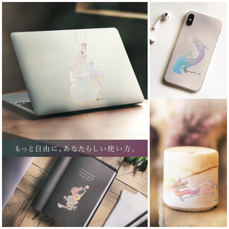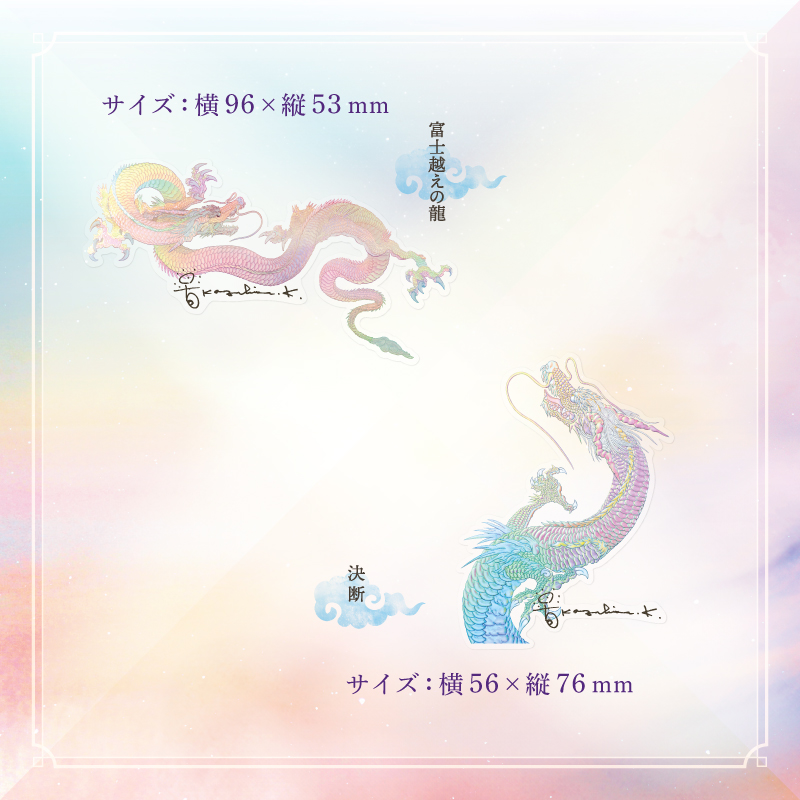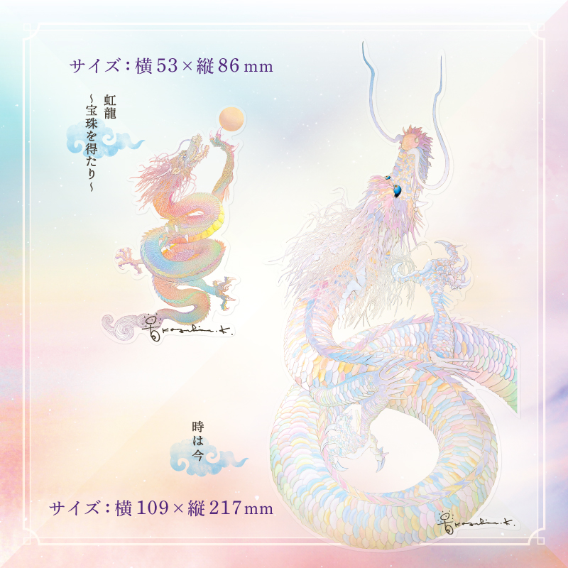 A new addition, a sticker set with our masterpiece “Toki wa Ima” and 3 rainbow dragon pieces to our goods.