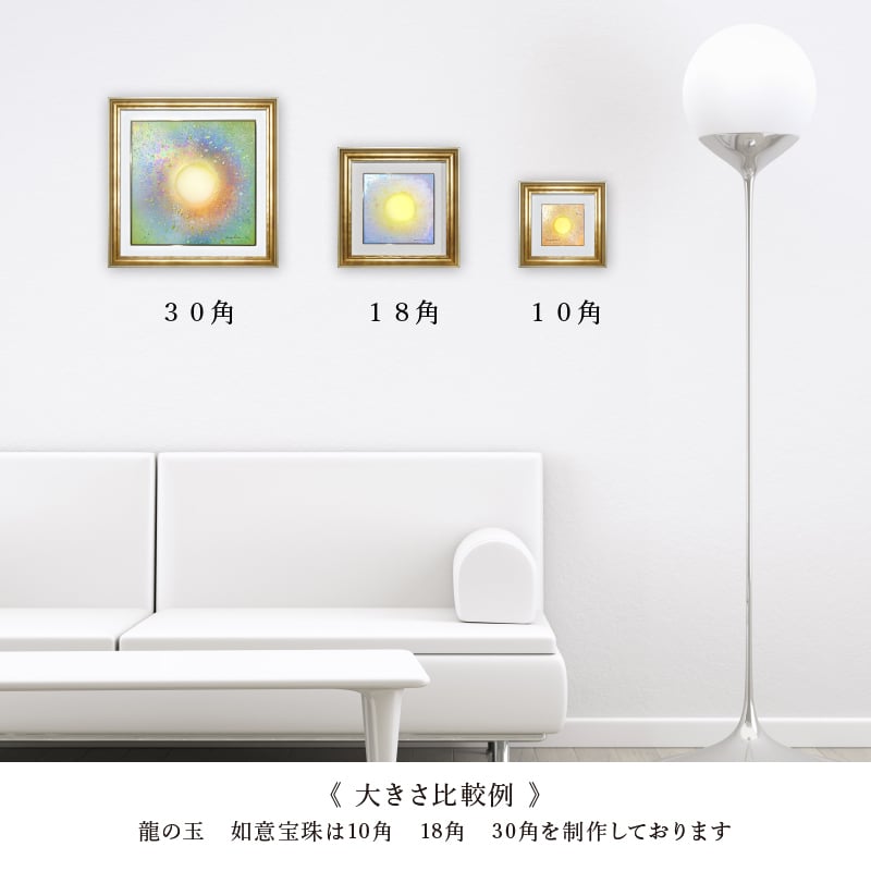 The "Nyoihōju" series is painted with these materials, so that the artwork, which is simply vibrant and colorful in a light room, has a gimmick to suddenly show luminous orb "Nyoihōju" when you turn off the light.