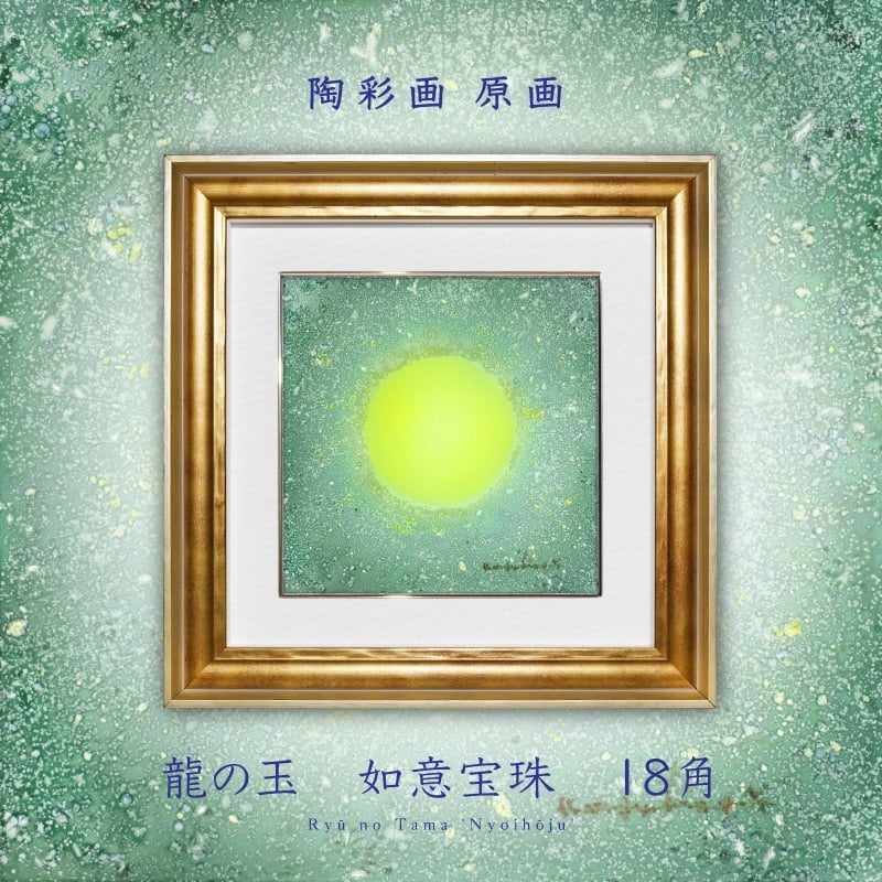 The "Nyoihōju" series is painted with these materials, so that the artwork, which is simply vibrant and colorful in a light room, has a gimmick to suddenly show luminous orb "Nyoihōju" when you turn off the light.